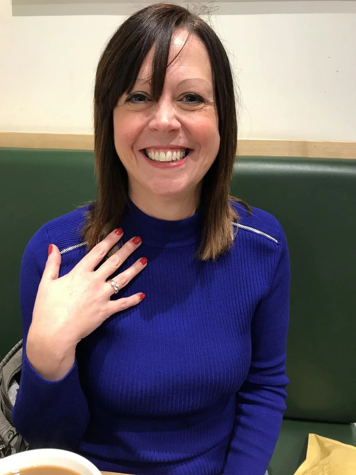 Clare wanted a remodel after her divorce, she remodelled her life and her wedding and engagement rings and they all faced a happier future together! Look at that smile.
