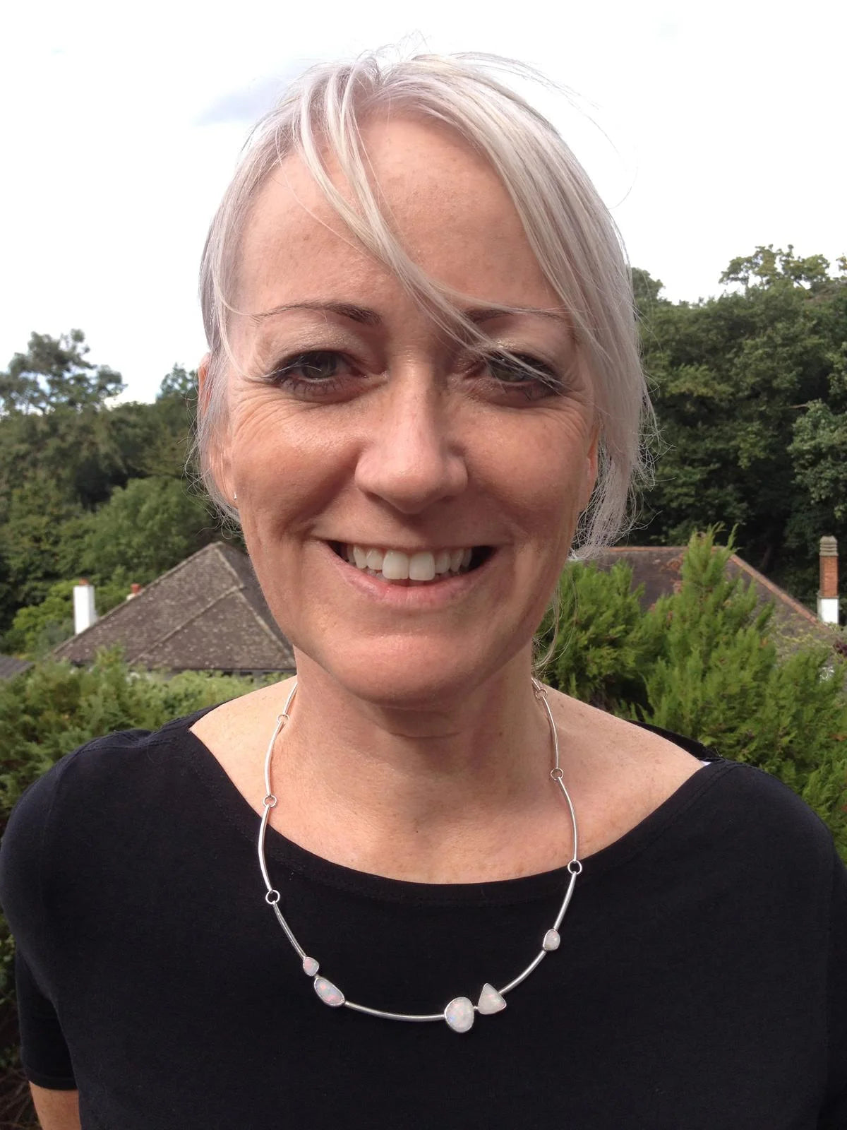 An opal and silver necklace made for Jane. Her lovely partner, Andrew, bought these opals in a mine 30 years before asking me to make them into a necklace for Jane.