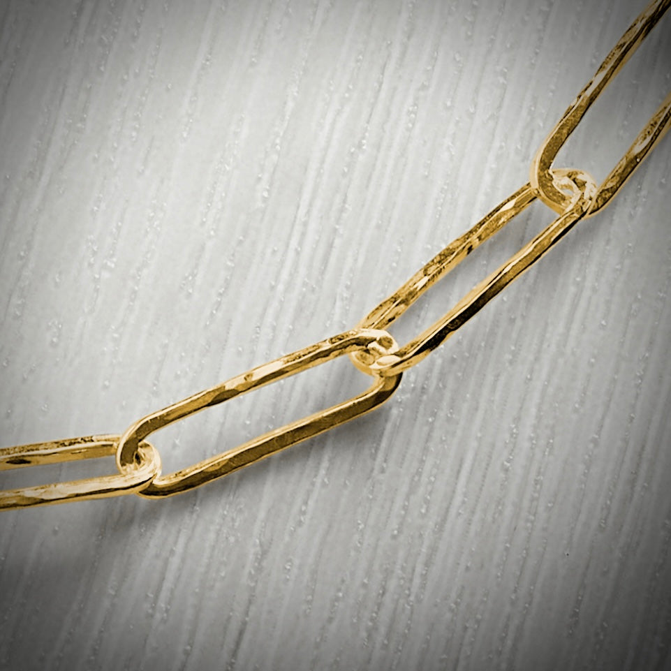 A contemporary take on the classic symbol of solidarity and unity - our paperclip chain is stunningly simple and goes with any outfit. The chain is textured and finished to a high shine exuding elegance and style. Why not pair them with our stunning chain earrings to complete the look?