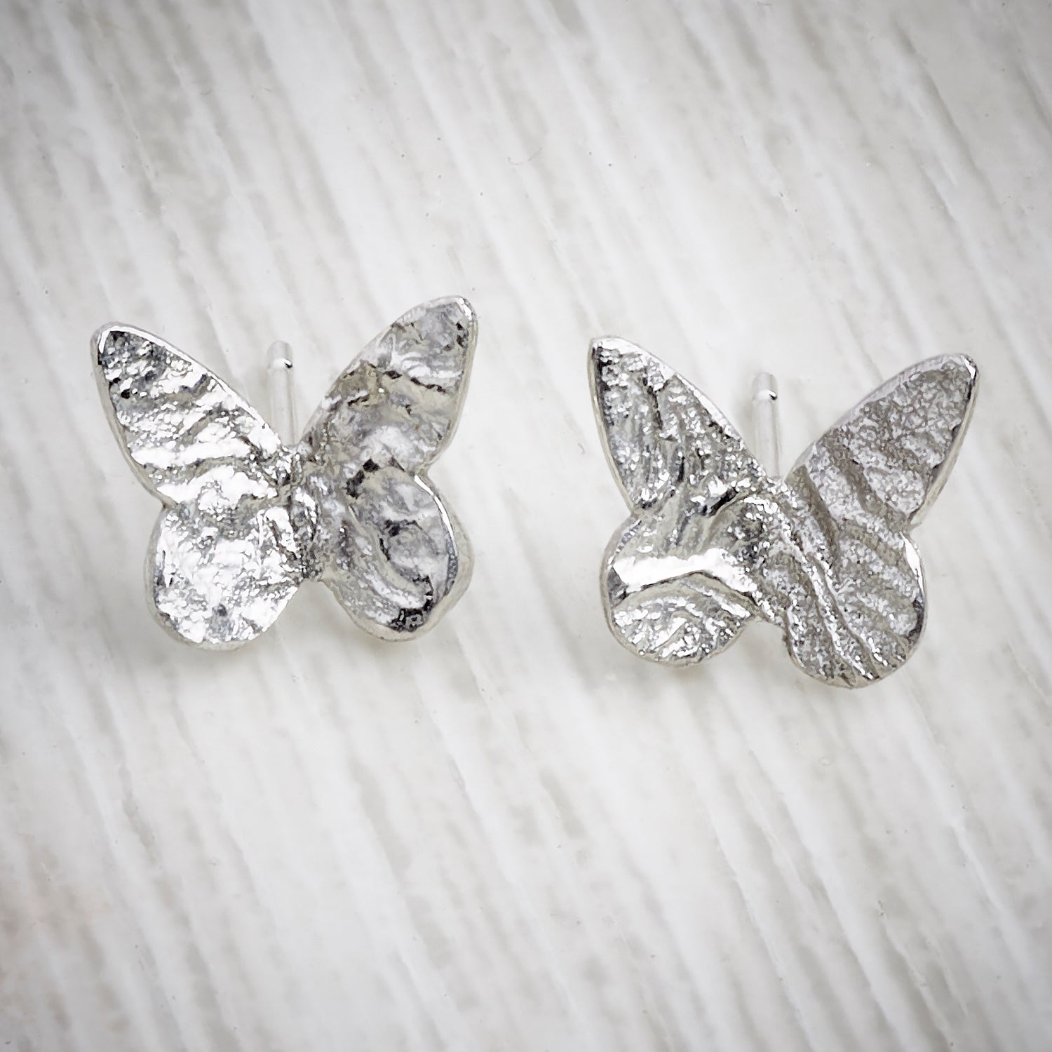These gorgeous and unusual silver stud earrings have an unusual melted surface texture created by melting the surface on purpose! This process, reticulation gives them a lovely sparkle and makes them both wearable and distinctive at the same time.